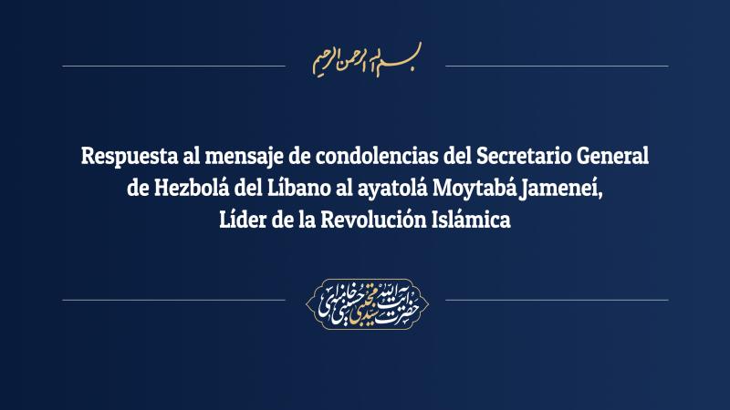El ayatolá Seyed Moytabá Hoseiní Jameneí, Líder de la Revolución Islámica, respondió mediante un mensaje a las condolencias y juramento de lealtad del secretario general de Hezbolá del Líbano.